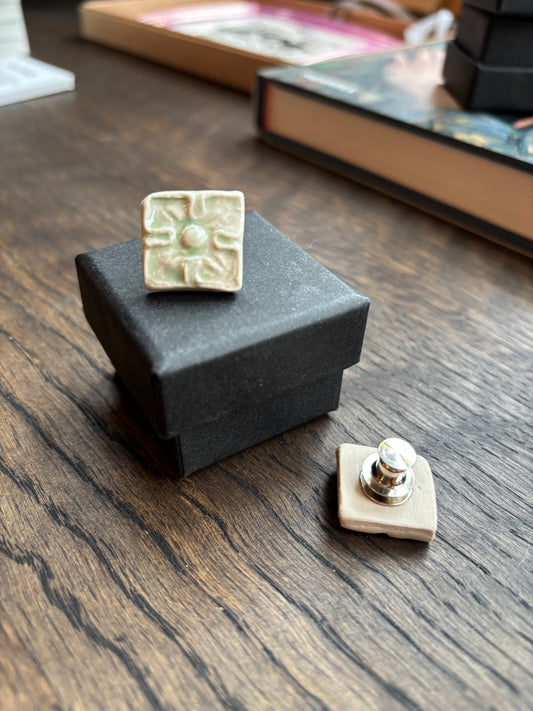 Handmade Paterae Pin Brooch by Kate Webber (Four-petal celadon)