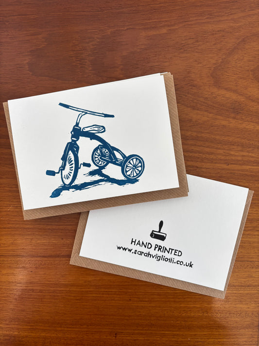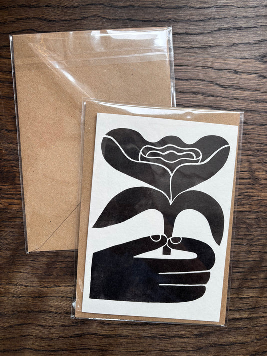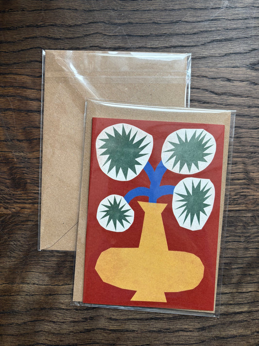 Karoline Rerrie Screen Printed Card Blue Yellow Flowers