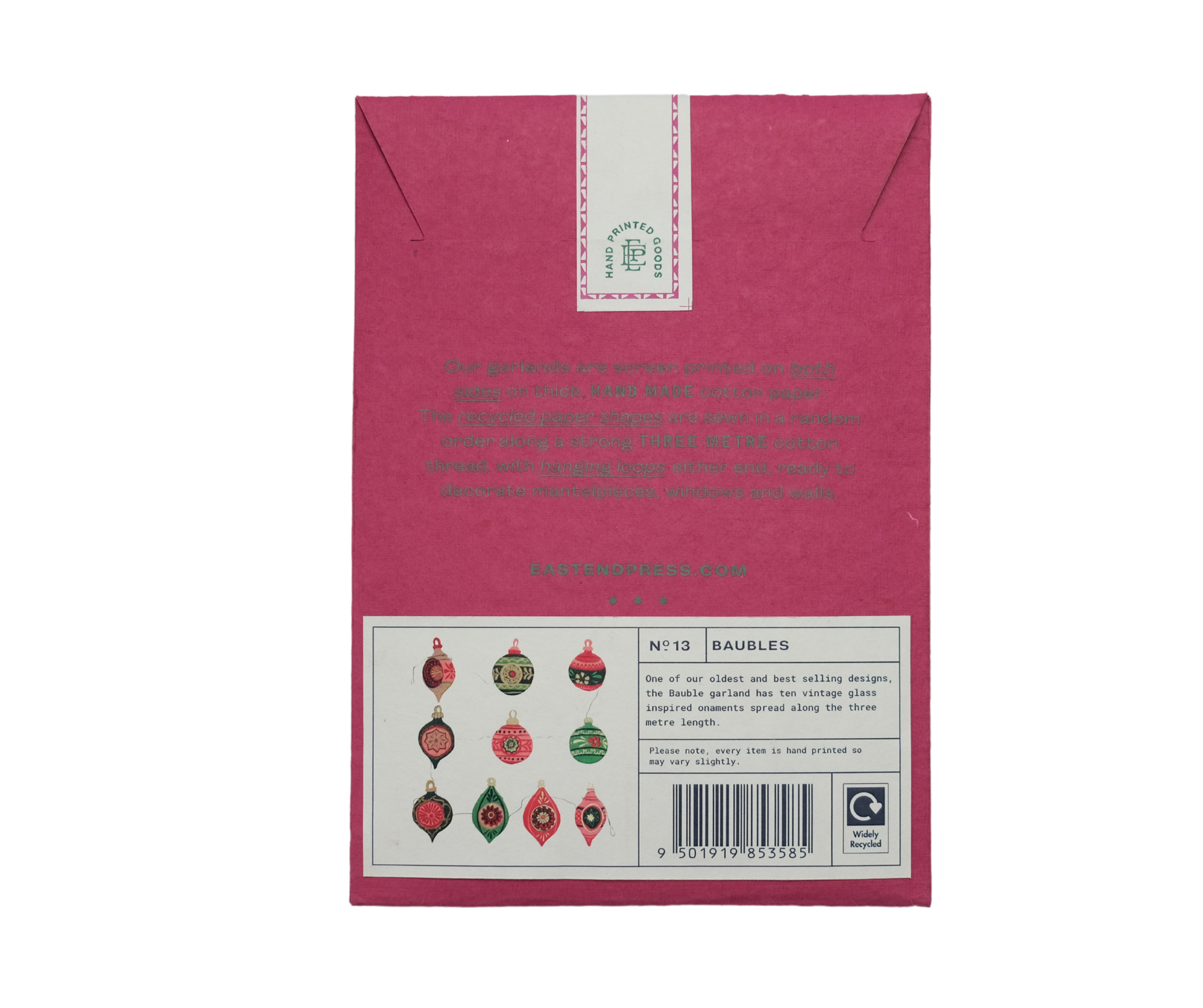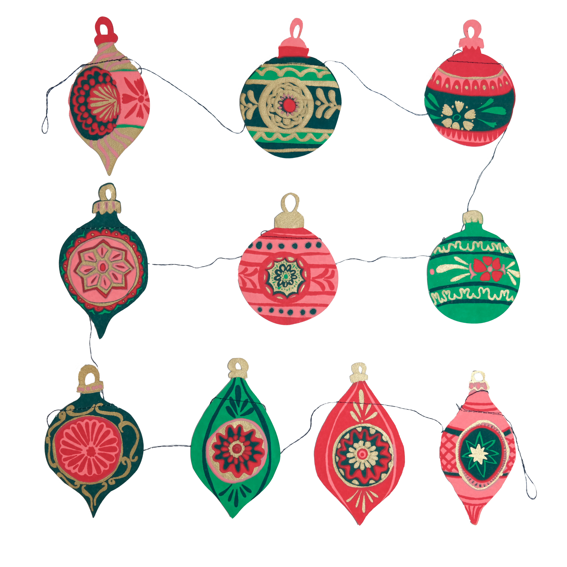 One of our oldest and best selling designs, the bauble garland has ten vintage glass-inspired ornaments spread along the three-metre length.