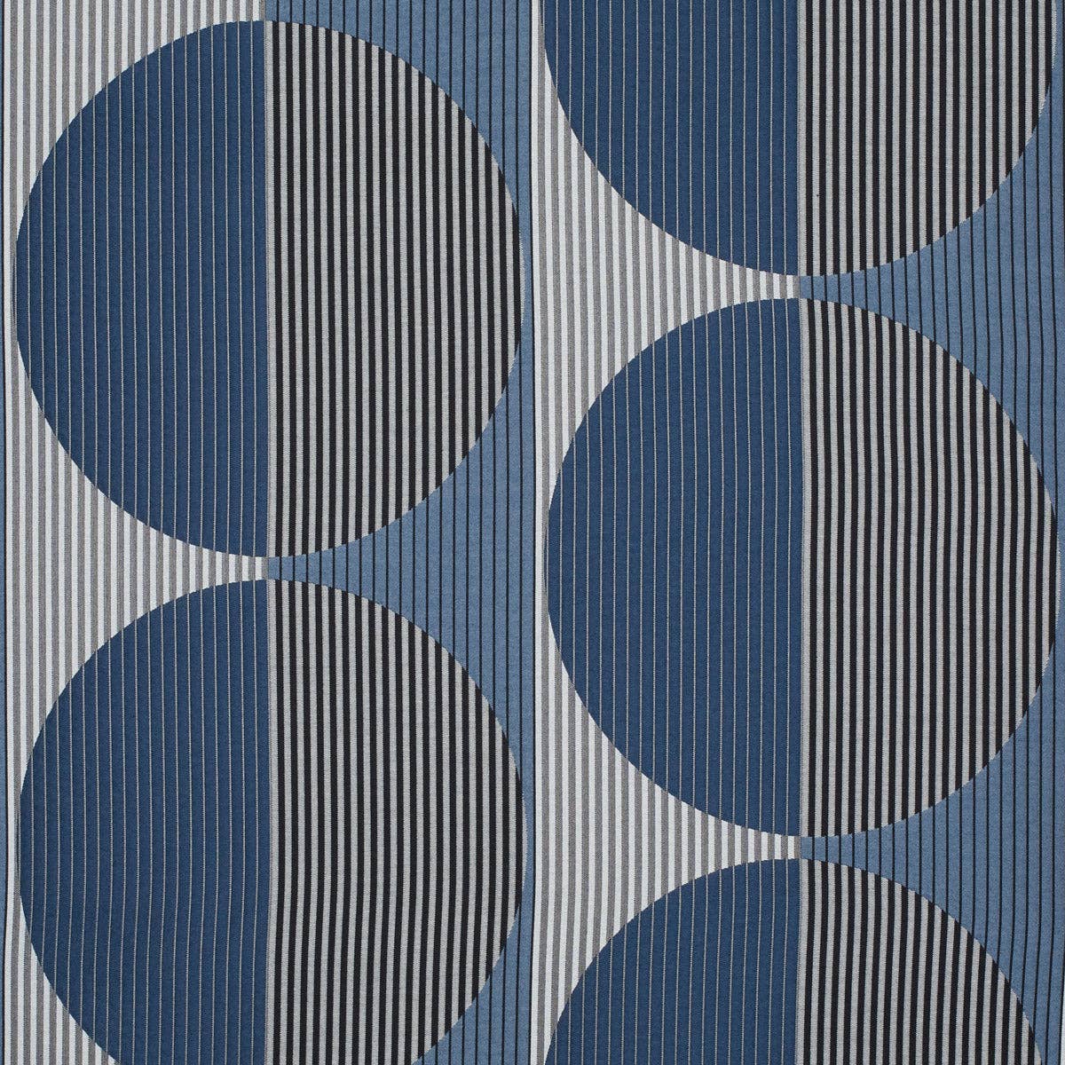The Stella Navy Luxury Shopper Bag by Margo Selby showcases Selby's distinctive design know-how, featuring dynamic linear patterns at various scales. Its generous size serves as a stylish backdrop for this intricate, layered motif, delivering a captivating pattern-within-pattern visual. Fully lined with coordinating pinstriped fabric, it includes a secure inner zip pocket. The tote offers versatility with both short handles for hand carrying and longer straps for shoulder comfort. Each bag is unique due to the fabric cut variation.