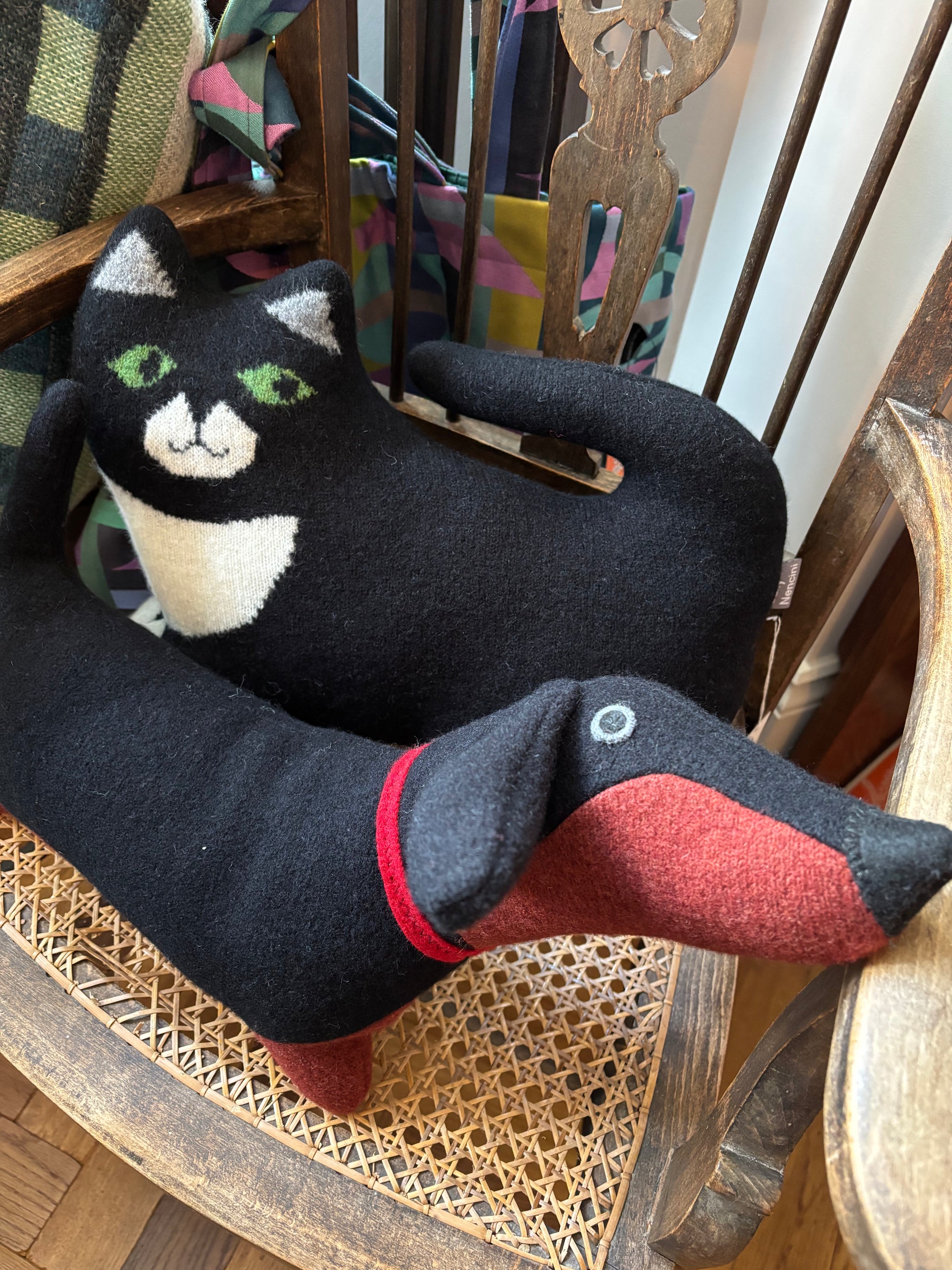 Sally Nencini is a textile artist originally from Co. Armagh, Northern Ireland, with a background in fashion design. Her love for handworked craft, surface pattern, and texture is at the heart of her creations. Inspired by vintage toys, particularly the colours and imagery of early Galt and Abbatt wooden puzzles, Nencini reinterprets these designs for a modern audience.