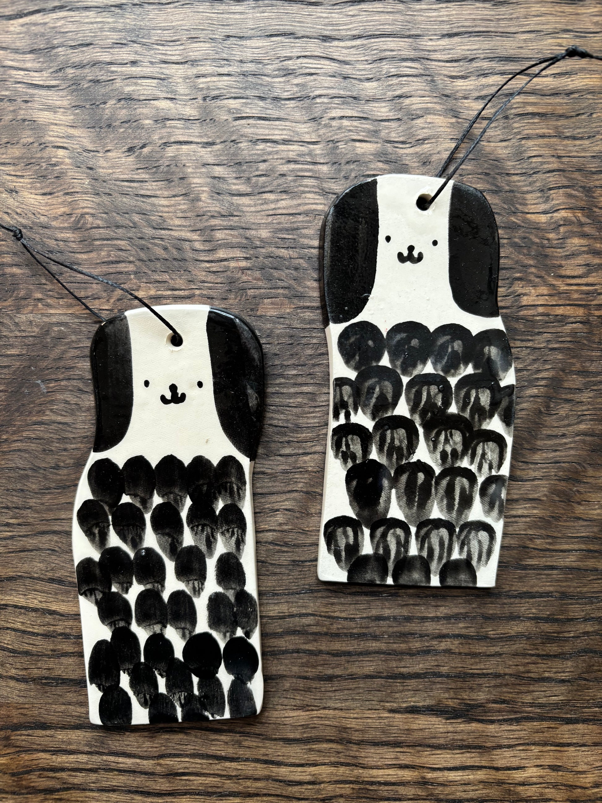 Bring a touch of handmade joy to your home with these ceramic ornaments, decorated on both sides and each finished with a hanging strap.