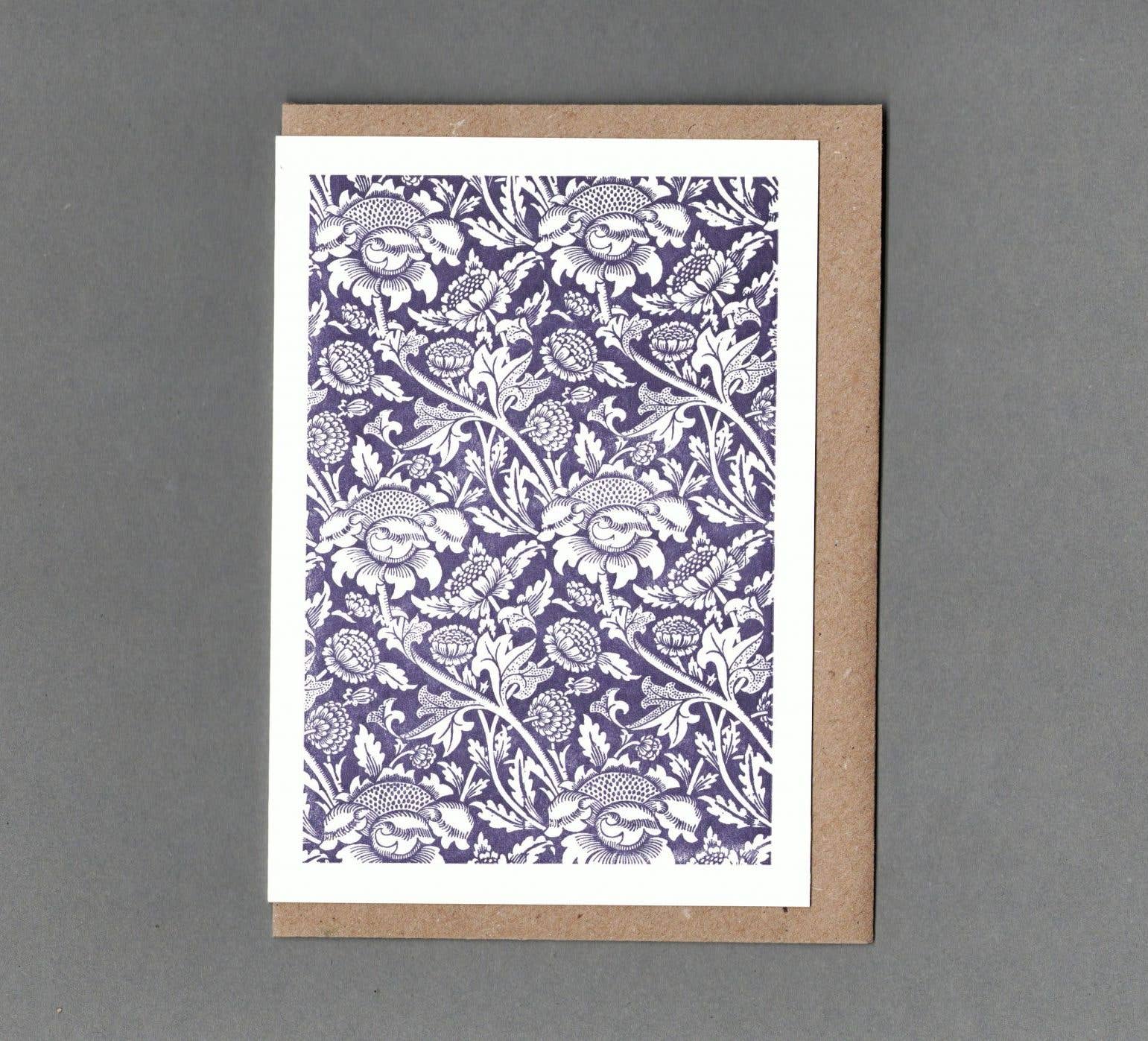 William Morris Purple. Letterpress Greeting Card: Without cello